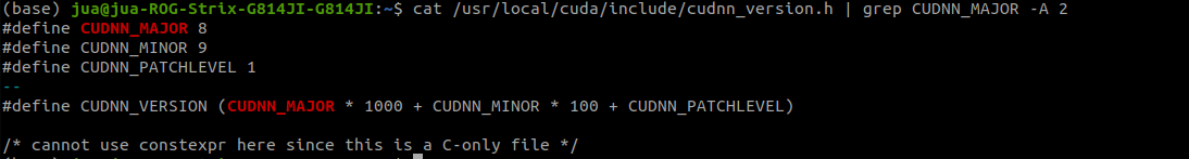 cat /usr/local/cuda/include/cudnn_version.h | grep CUDNN_MAJOR -A 2 (이거 쳤을 때 #define CUDNN_MAJOR 8 떠야함)